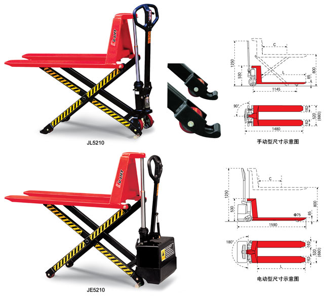 ● 快升起油缸和按照人機工學設計的塑膠手柄,隔熱舒適,省時省力